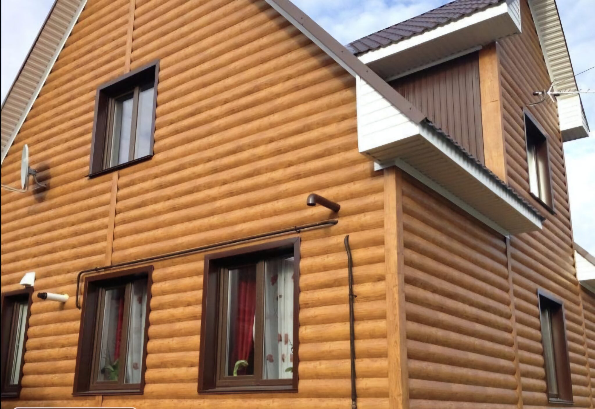 Использование металлического блок-хауса позволяет создать эффектный внешний вид здания, напоминающий оцилиндрованный брус, при этом сохраняя высокие эксплуатационные качества.